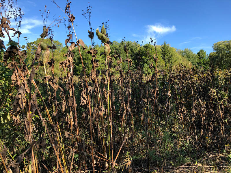 A similar kind of discovery came about in approximately 2011. That August, I came upon a patch of lotuses in a particularly shallow end of the lake--an area where upright flowers were pushing up among distinctly round, non-waxy looking leaves that typically held themselves above the water surface. These were definitely not water lilies. I had thoroughly explored every area of this lake, and lotus plants had never been there before. How did they get there? I was excited, for I knew about lotuses, both from their symbology in Buddhism and from their role in biomimicry as a design inspiration. By observing the way water sheets off the lotus leaf--the leaves are said to be self-cleaning because the water and dirt never sticks to the surface--people discovered ways to mimic the physical structure of the plant and devise other self-cleaning substances, such as paint, glass, and fabrics.