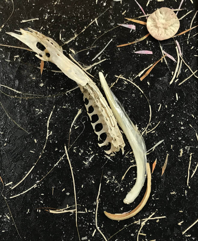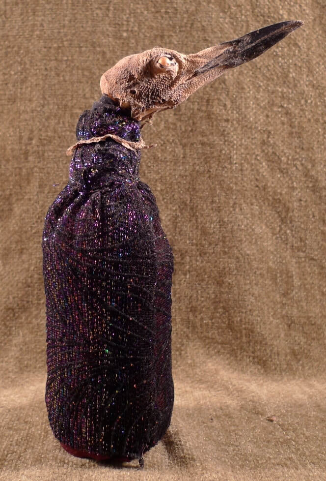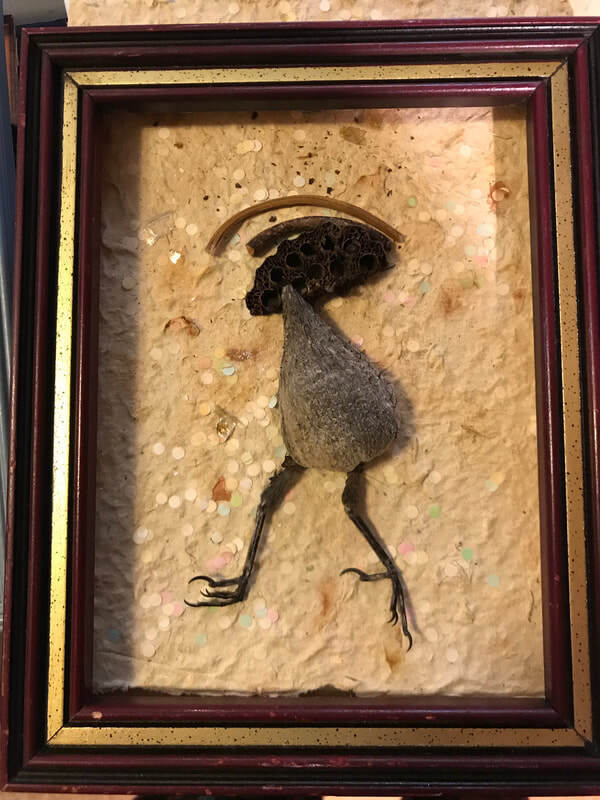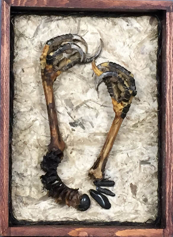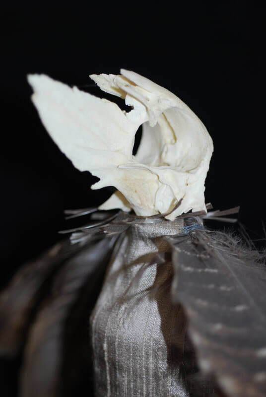 It seems timely to post images of some of my creations that "touch" bird energies (or perhaps sound their echoes). They have been made over a number of years. The pieces incorporate actual bird parts, left for me by bird beings that have passed on from their bodies (e.g., found on the beach or in the crook of a tree). Some people are a bit uncomfortable with this kind of detritus--they find it too visceral--but that is what I appreciate. I experience a deep sense of reverence in working with these bird traces, and use them to embody and communicate something of their spirit. I hope you will be able to share that quality and feel the honor of the gift.