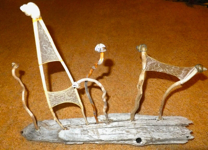 Today I really started thinking about "crossing over" more generally and realized this is the very phrase used to talk about what happens when someone dies--to move from the density of the body into the spirit world. Crossing Over was the name of medium John Edwards' TV show, where he provided audience members a chance to connect with their dead loved ones (episodes of that show are still streaming). That concept of crossing over is definitely about making it to a more multidimensional space. There are many mythic references to this idea too, some of which include boats, like the Greek crossing to the land of the dead (Hades) over the River Styx. There is in our American immigrant mythos (and my own family history) the image of crossing the ocean to a land of opportunity --a long, difficult journey with only a promise at the other end (alas, so different from crossing in a slave ship, another part of the American psyche--the shadow side of the same image; being taken to something dark and being deprived of possibility). There are also images of "boat people"--the Hmong people trying to flee across the Mekong River, the Cubans trying to get to Florida, or so many instances of refugees squeezing together, fleeing from one site of oppression or another, risking the journey to find somewhere better. Somewhere in my mind, too, is the image of the courageous people of the Pacific crossing vast spaces in long canoes, migrating to the Hawaiian islands (or, in the story of Lemuria, migrating from a much earlier manifestation of those islands to other parts of the world). The boats I have been making are generally long and thin, and must be most closely alluding to those paddling journeys.
