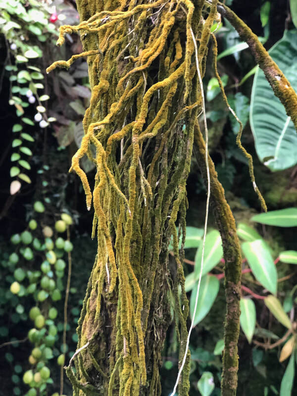 Here's the scene: morning on the lanai, still cool, birds and breezes. Even the hanging Spanish moss sways gently, and wide-awake ginger leaves reach upward, so green. Lula, the little avocado tree I am helping to come back from the brink, is bravely putting out new leaves to catch the early sun. The ceiling fan is spinning gently overhead (this one silent, unlike the creaky one in the next room), adding to the sense of aliveness.