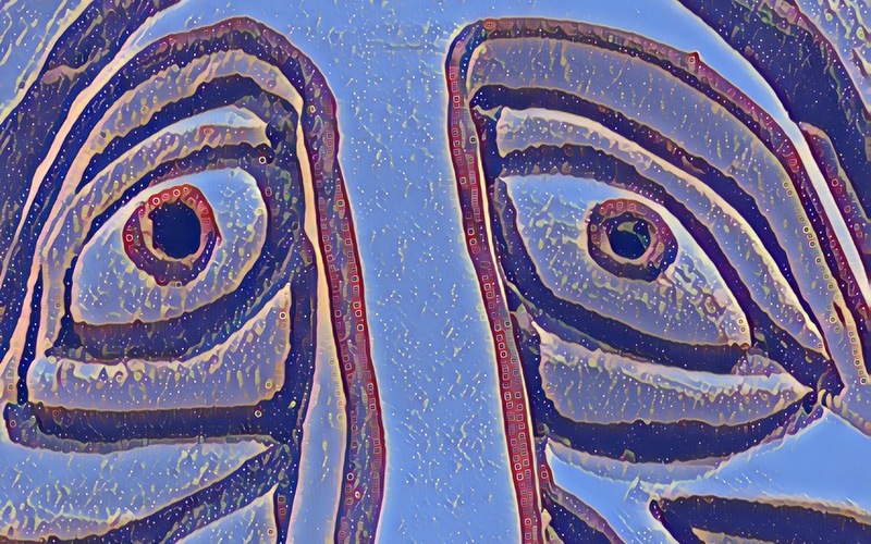 Masks or sculpted faces that keep the blankness but fill in the holes seem melancholy, but are more relatable.