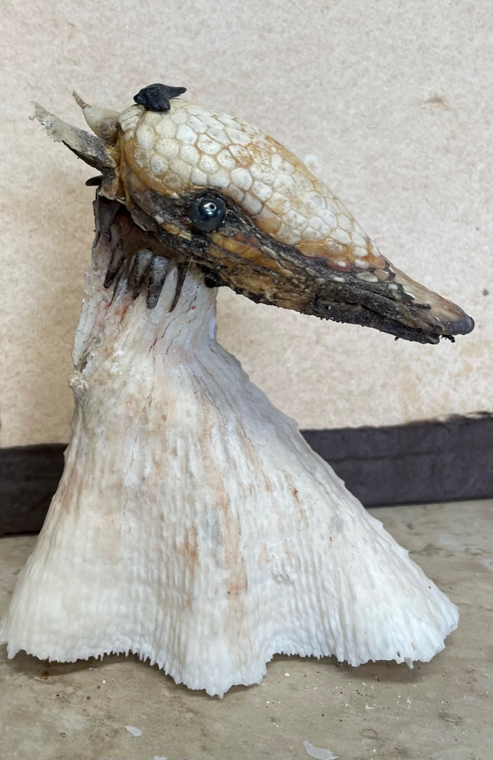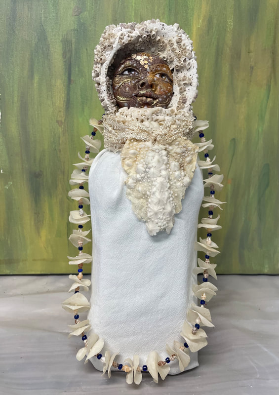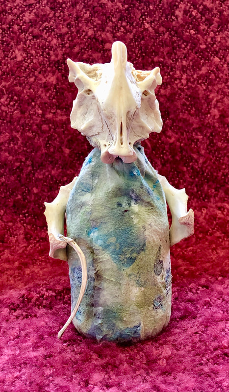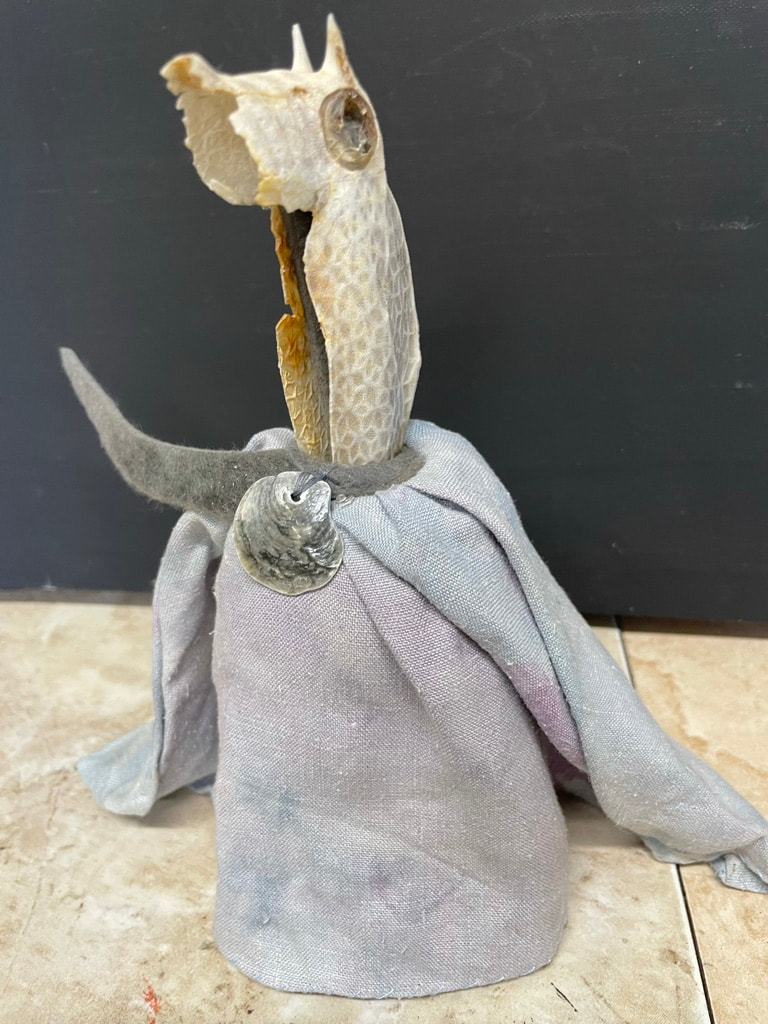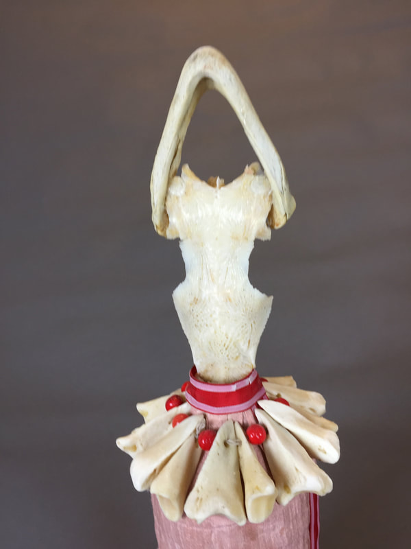 These figural sculptures, which I think of as "earth beings," are made from natural detritus such as bones, bird beaks, seed pods and shells which I collect, process and give another life. The embodied characters call attention to the amazing and ingenious natural forms that comprise them, often in evocative and surprising ways. The Tierras ask us to feel their energy, look more closely at nature, and lead us to a contemplative, mystic realm.